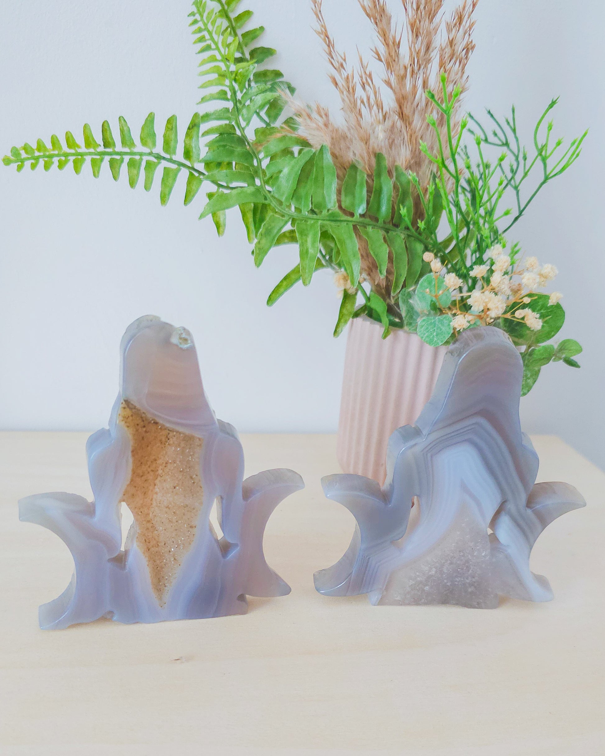Carved from layered Agate — a stone of stability and slow transformation — each piece carries a grounding yet deeply intuitive energy. Whether placed on your altar, held during ritual, or gifted to someone walking their own path of growth, this Moon Goddess invites calm, introspection, and gentle rebirth.