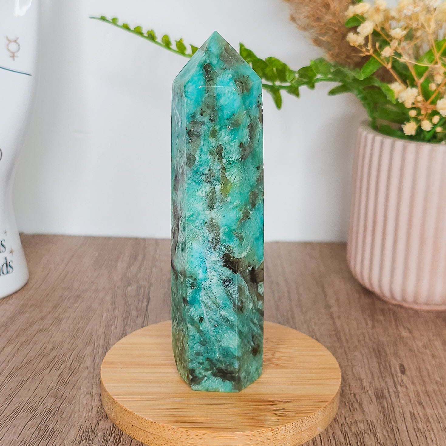 ✨️"Amazonite has a powerful filtering action. At a physical level, it blocks geopathic stress, absorbs microwaves and cell phone emanations, and protects against electromagnetic pollution. At a mental level, it filters the information passing through the brain and combines it with intuition.