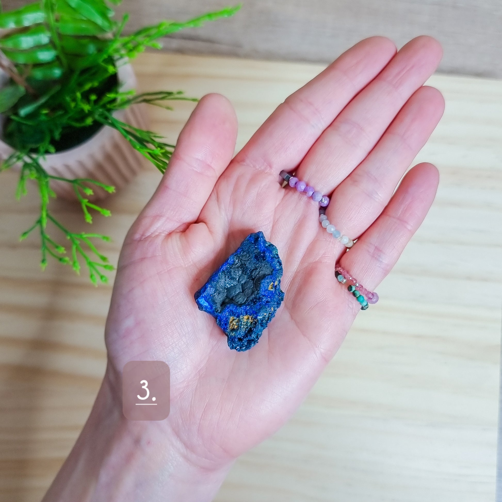 Mentally, Azurite brings about clear understanding and new perspectives, and expands the mind. It releases long-standing blocks in communication and stimulates memory. Azurite challenges your view of reality and lets go of programmed belief systems to move into the unknown without fear, reaching deeper insights and a new reality. Old beliefs gently rise into the conscious mind to be tested against truth.