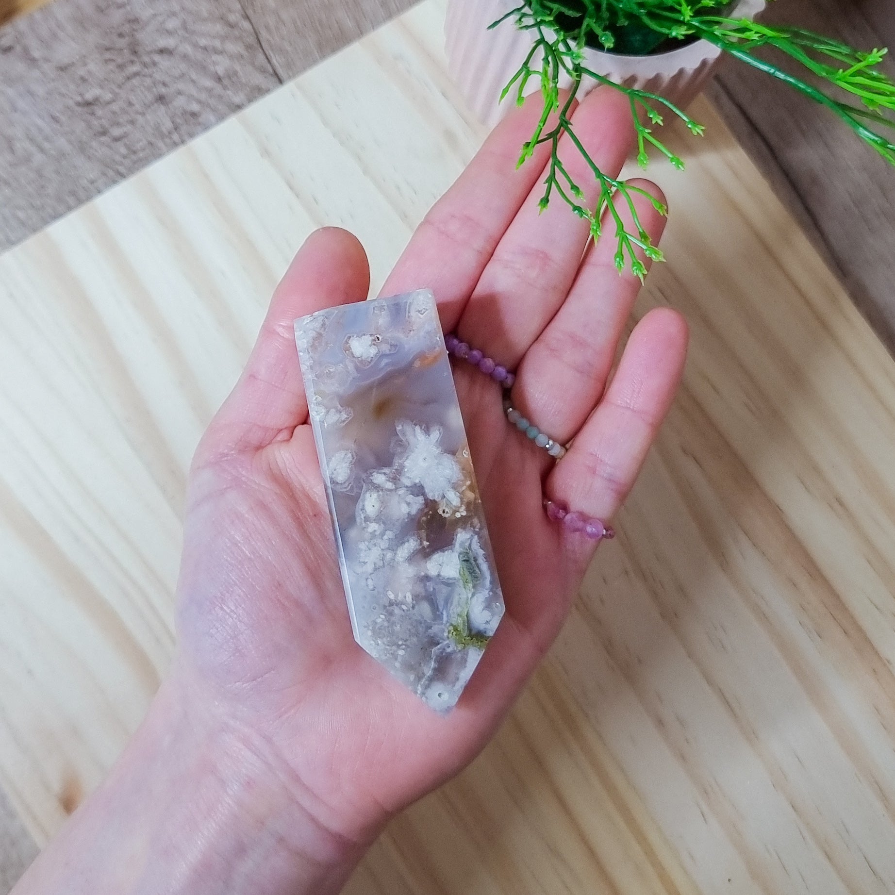 Flower Agate helps us reach our highest potential, protecting us from fears and self-doubt.