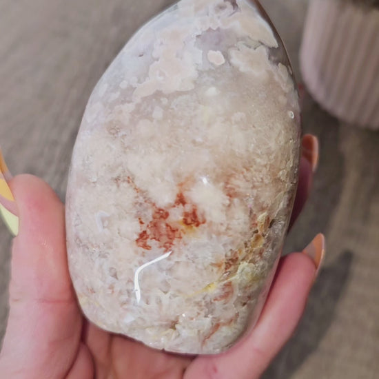 Flower Agate inspires us to manifest and nurture our dreams. Its energy ignites a passion to pursue dreams and live life to the fullest.