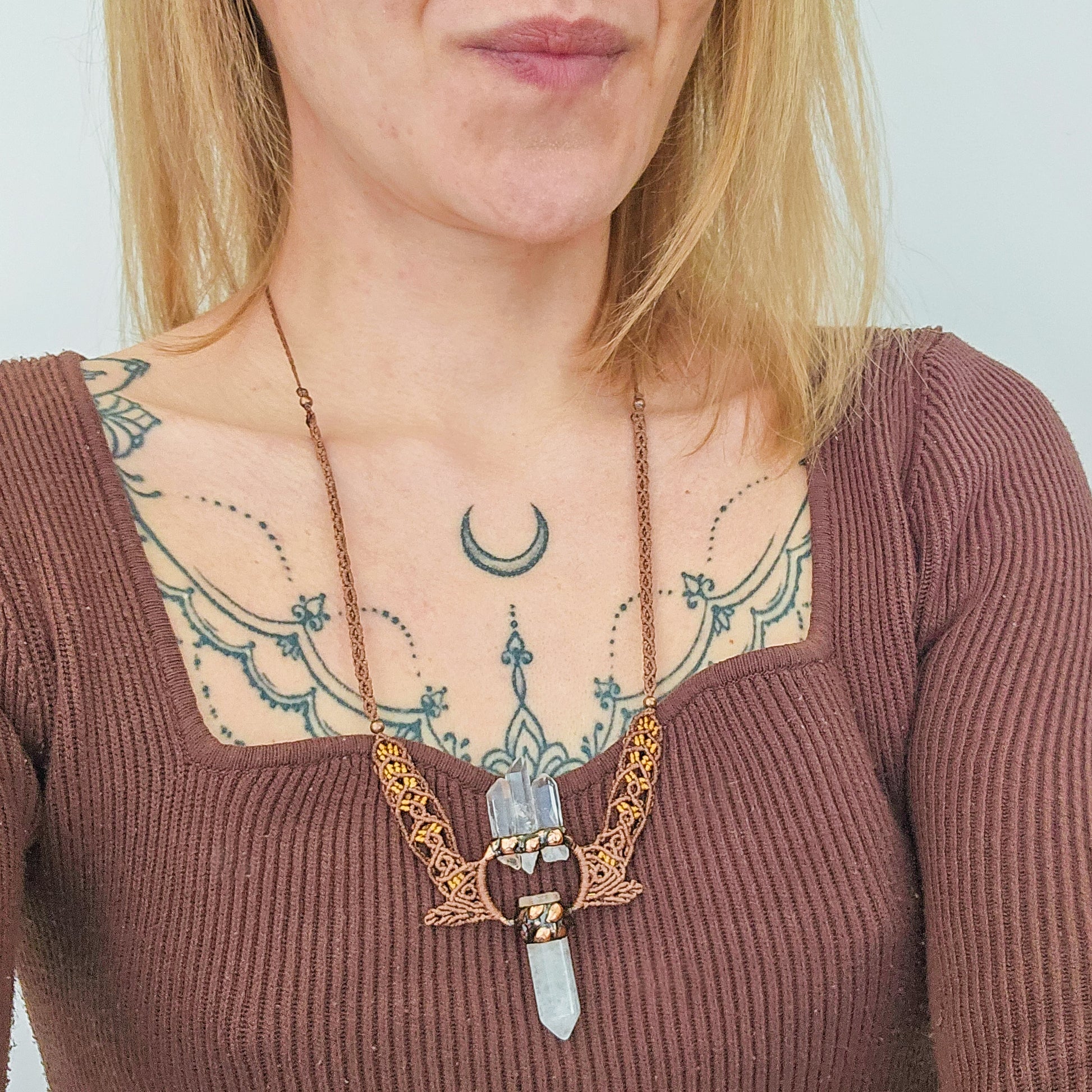 Handmade by myself with micromacrame technique adjustable Amulet necklace with Clear Quartz pendant.