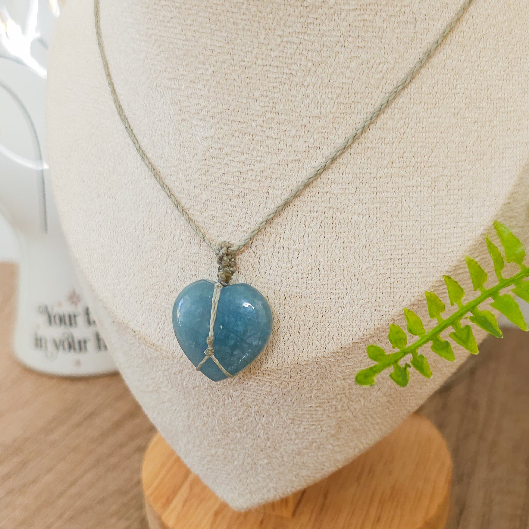 Handmade by myself with micromacrame technique adjustable Aquamarine Heart Necklace.