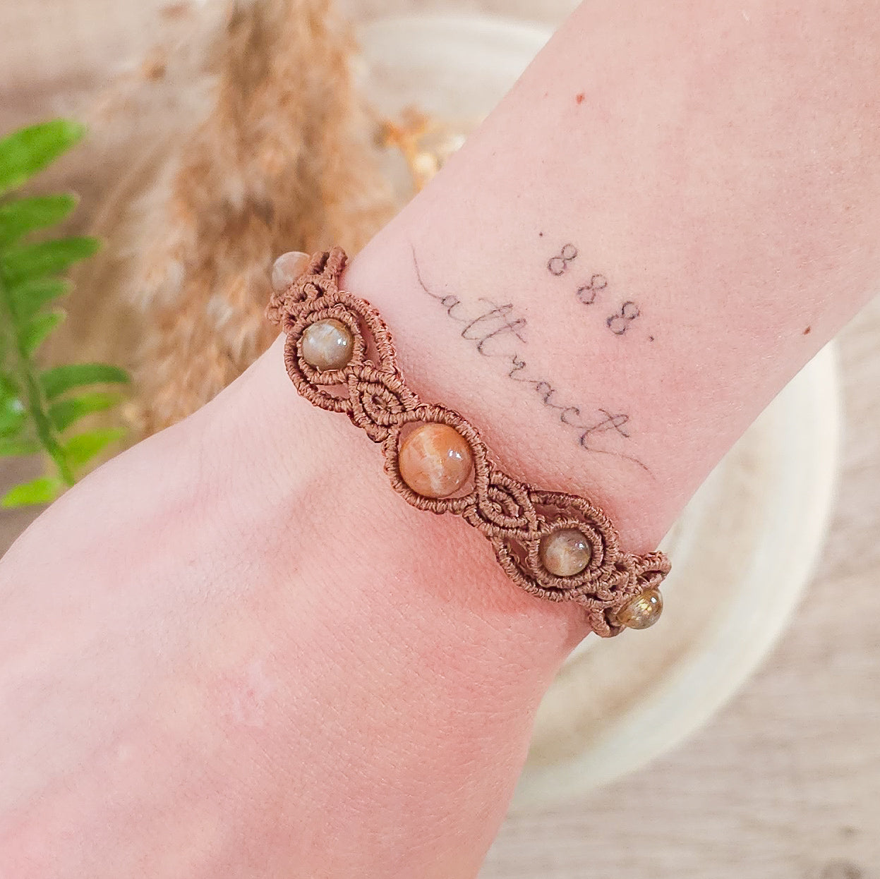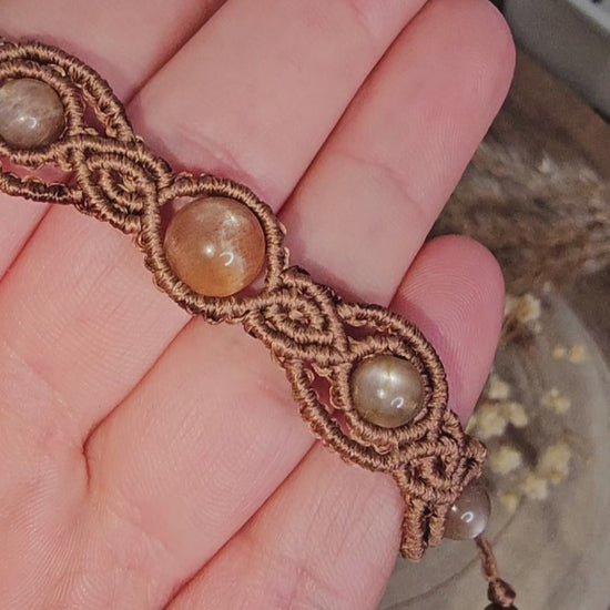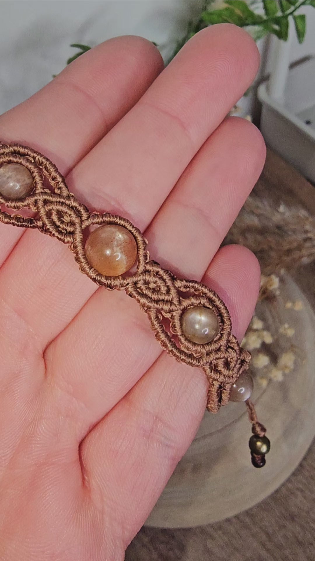 Handmade by myself with Micromacrame Technique adjustable bracelet with moonstone and Sunstone.