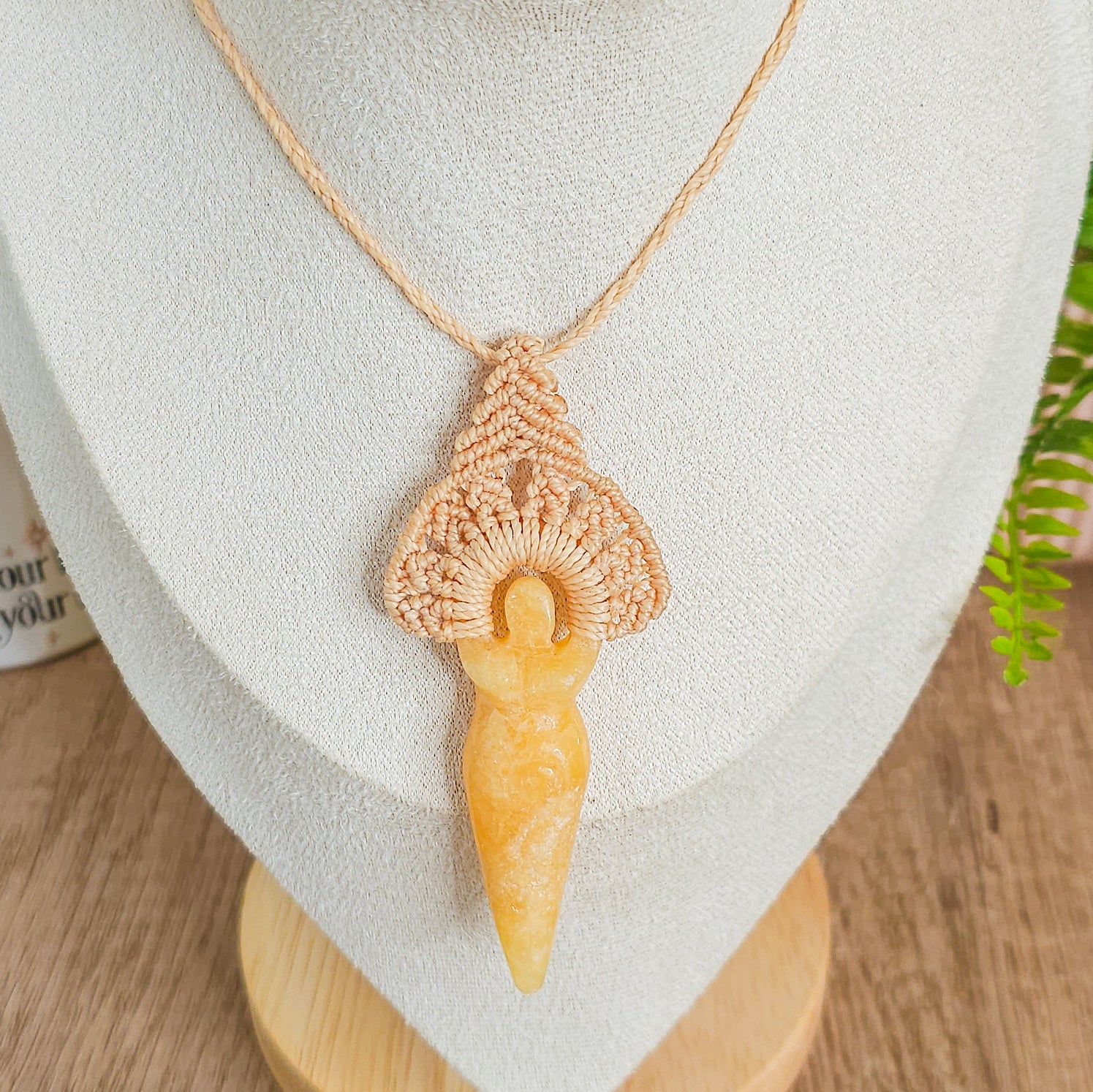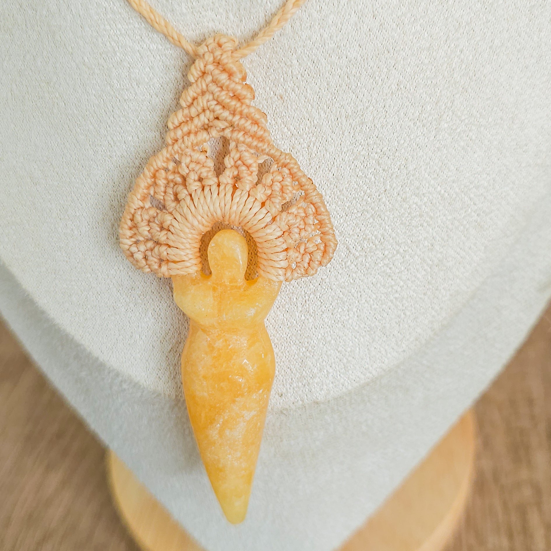 Handmade by myself with micromacrame technique Orange Calcite Goddess Amulet Necklace.