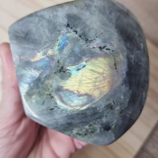 "Iridescent Labradorite is a highly mystical and protective stone, a bringer of light. It raises consciousness and connects with universal energies. Labradorite deflects unwanted energies from the aura and prevents energy leakage. It forms a barrier to negative energies shed during therapy. It can take you into another world or into other lives. A stone of esoteric knowledge, it facilitates initiation into the mysteries.