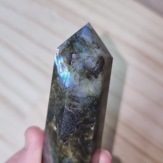 "Iridescent Labradorite is a highly mystical and protective stone, a bringer of light. It raises consciousness and connects with universal energies. Labradorite deflects unwanted energies from the aura and prevents energy leakage. It forms a barrier to negative energies shed during therapy. It can take you into another world or into other lives. A stone of esoteric knowledge, it facilitates initiation into the mysteries.