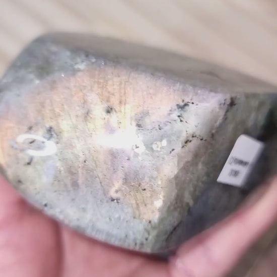 "Iridescent Labradorite is a highly mystical and protective stone, a bringer of light. It raises consciousness and connects with universal energies. Labradorite deflects unwanted energies from the aura and prevents energy leakage. It forms a barrier to negative energies shed during therapy. It can take you into another world or into other lives. A stone of esoteric knowledge, it facilitates initiation into the mysteries.
