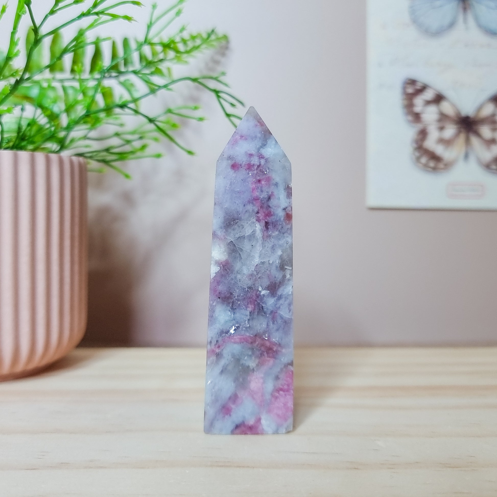 Lepidolite with Pink Tourmaline and Quartz Tower. Often reffered to as Unicorn Stone.