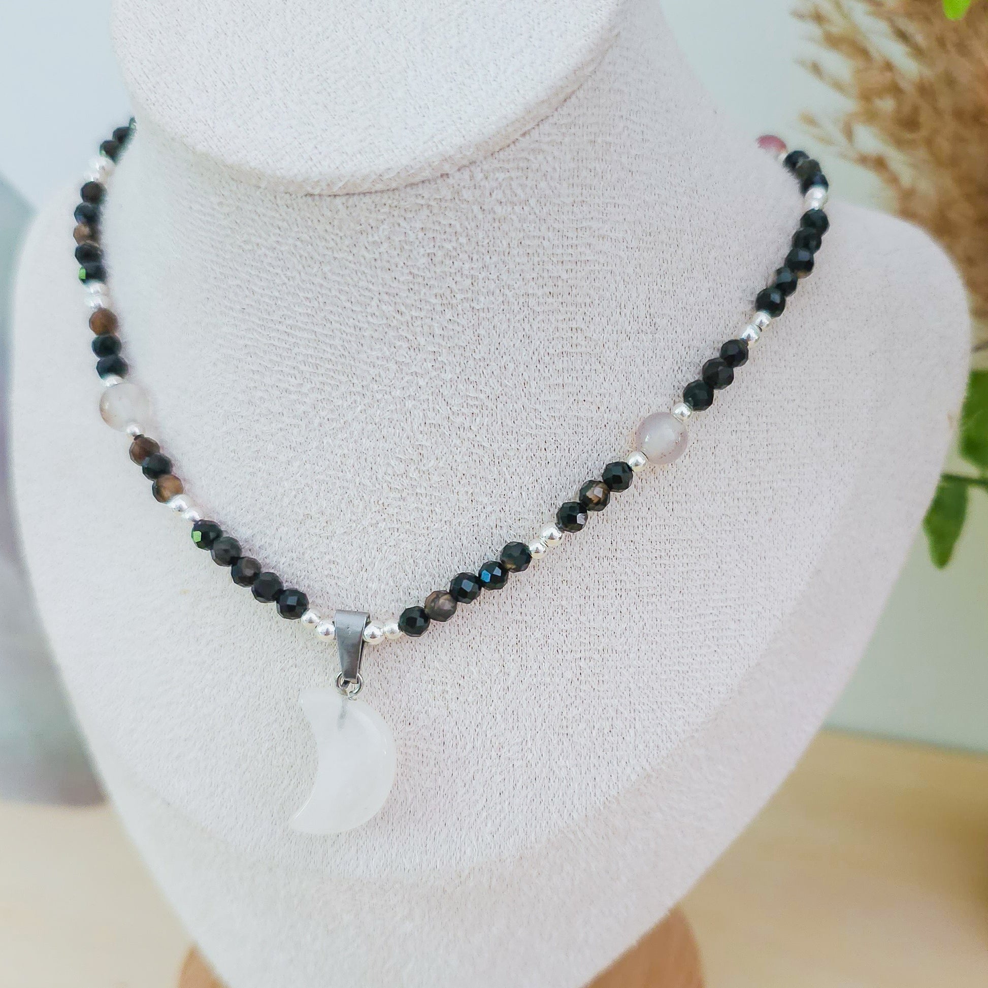I created this necklace with the intention of offering grounded protection, inner clarity, and gentle guidance. Each stone—Clear Quartz, Black Onyx, and Dendritic Agate—was thoughtfully chosen for its unique energy and meaning.