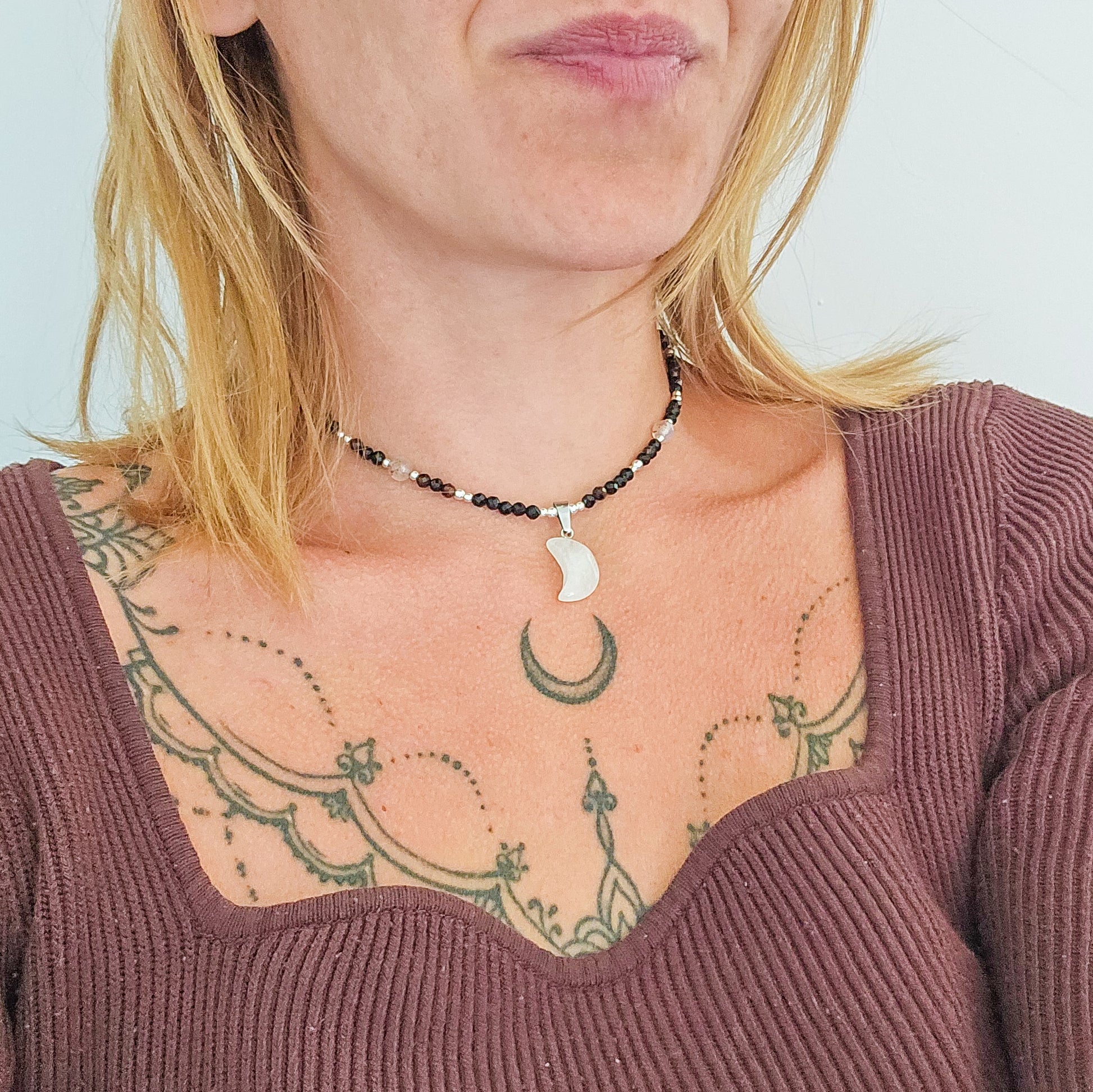 I handcrafted this necklace during the Full Moon in Scorpio, a time of deep transformation, emotional release, and soulful insight. Scorpio’s powerful lunar energy infuses this piece with resilience and clarity, supporting you to let go of what no longer serves and move forward with grounded grace.