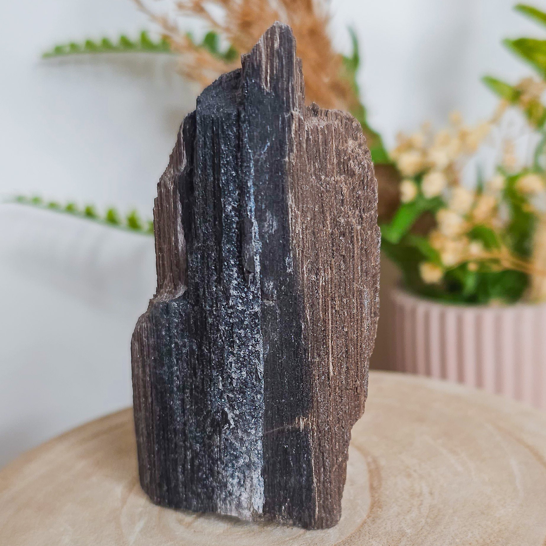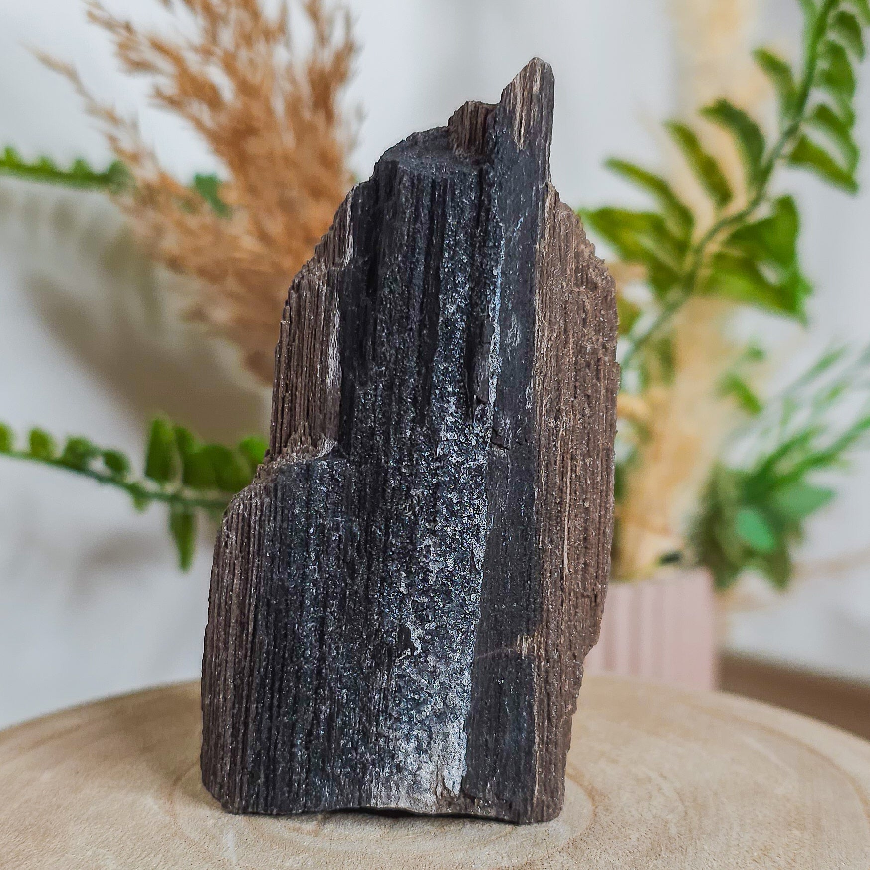 "Protective Petrified Wood is invaluable for grounding high vibrations into the earth. This stone formed when a living tree fell into water and elements such as manganese, iron and copper were alchemically absorbed. In many cases the wood turned to shining silica.