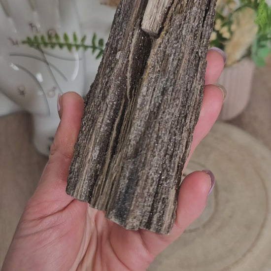 Petrified Wood supports the soul during challenges and tribulations of spiritual evolution and reveals the soul-gifts at their heart. It facilitates peeling back the layers encrusting your core being, releasing that which no longer serves while retaining that which does. With this stone's assistance you walk upon the earth with grace, honoring the wisdom of the ages. A calming stone, Petrified Wood helps you to worry less especially about things of little importance. It helps you to accept serenely things you cannot change, to make changes that are possible and instils the wisdom to know the difference. Use this stone to be all that you may be.