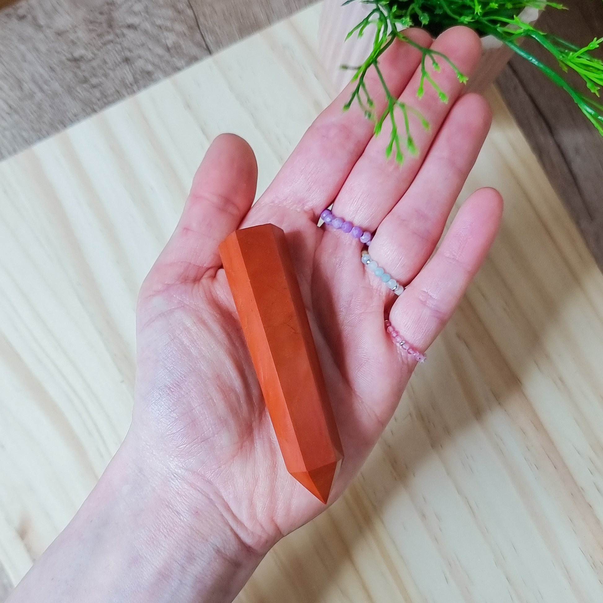 Red Jasper is gently stimulating. It grounds energy and rectifies unjust situations. Red Jasper brings problems to light before they become too big and provides insights into the most difficult situations. It makes an excellent "worry bead, calming the emotions when played with. Placed under the pillow, it helps dream recall. Red Jasper stimulates the base chakras and assists rebirthing. It cleans and stabilizes the aura, and strengthens your boundaries. This is a stone of health, strengthening and detoxifying the circulatory system, the blood, and liver. It dissolves blockages in the liver or bile ducts. Position Base chakra or as appropriate."