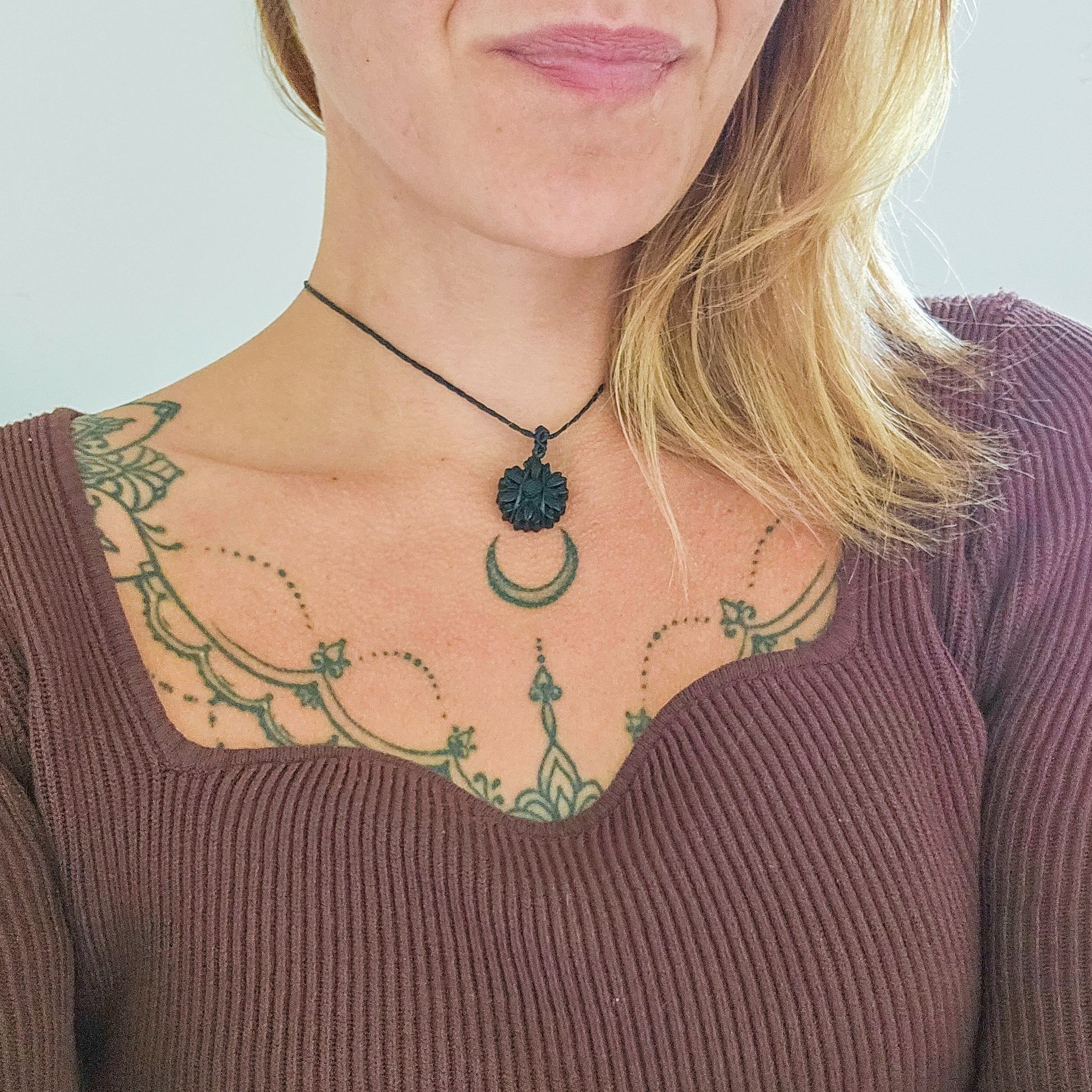 Part of my Bloom Collection, this piece was created during a time of deep grounding and stillness. As I knotted each thread, I carried the intention that this necklace would serve as a source of steady strength and quiet protection. It’s a piece for the one walking through transformation, learning to hold space for both light and shadow within themselves.