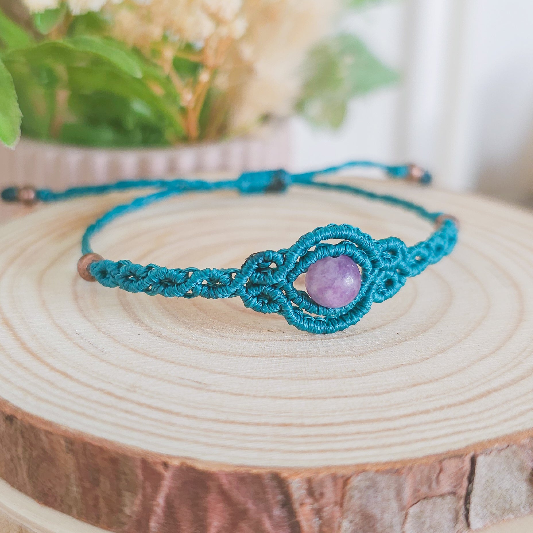 Strawberry Moon Calm & Courage – Handmade Micromacrame Bracelet with Lepidolite