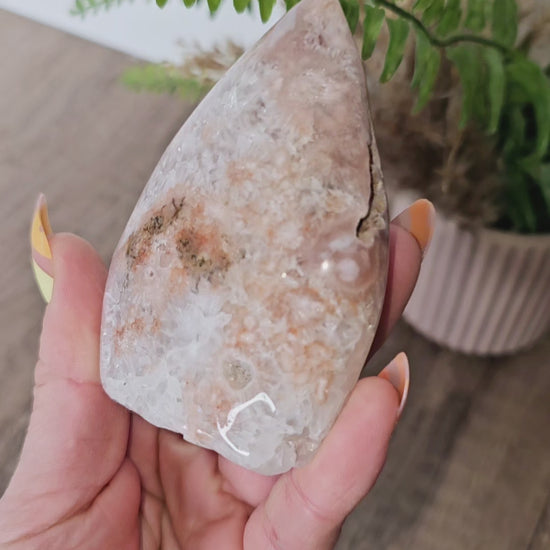 It's believed that it has a gentle, and nourishing energy resembling a field of flowers. The circles and dots represent seeds and the floral plumes represent the blossom, reminding us that we start out as seeds, then blossom and grow. Flower Agate helps us envision the process of growth, honoring and appreciating each part of the process.