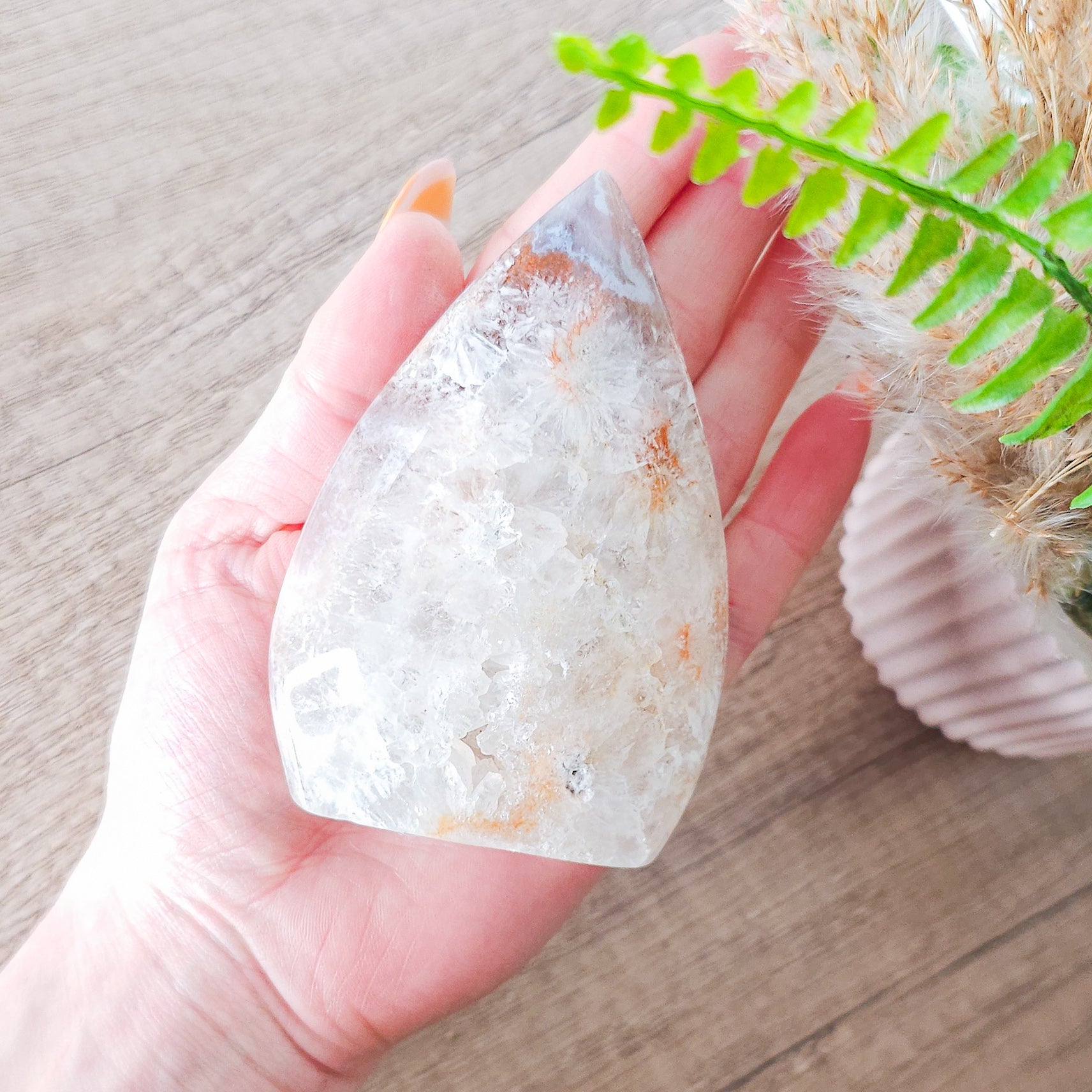 At a spiritual level, this crystal raises energy to the highest possible level. Containing every color possible, Clear Quartz works on all levels of being. Storing information like a natural computer, these crystals are a spiritual library waiting to be accessed. Quartz has the ability to dissolve karmic seeds". It enhances psychic abilities and attunes you to your spiritual purpose. Used in meditation, Quartz filters out distractions. Quartz is the most efficient receptor for programming. At a mental level, Quartz aids concentration and unlocks memory.